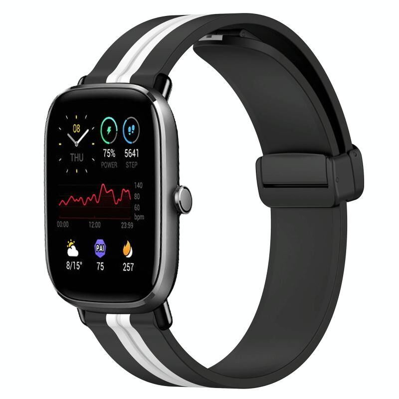 Για Amazfit GTS 2 Mini 20mm Πτυσσόμενο μαγνητικό κούμπωμα ζώνη ρολογιού σιλικόνης (Μαύρο + Λευκό)