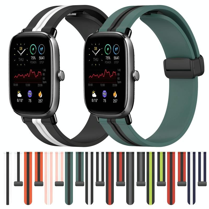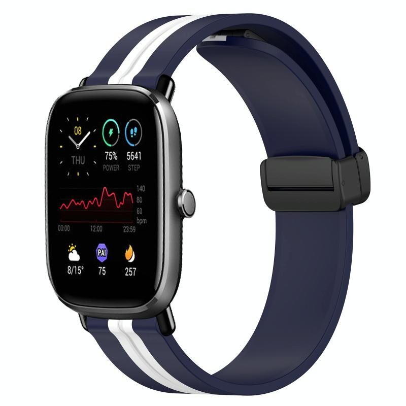 Για Amazfit GTS 2 Mini 20mm Πτυσσόμενο μαγνητικό κούμπωμα ζώνη ρολογιού σιλικόνης (μπλε + λευκό)