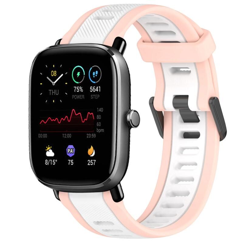 Για Amazfit GTS 2 Mini 20 χιλιοστά δύο χρωμάτων υφή σιλικόνης ρολόι μπάντα (λευκό + ροζ)