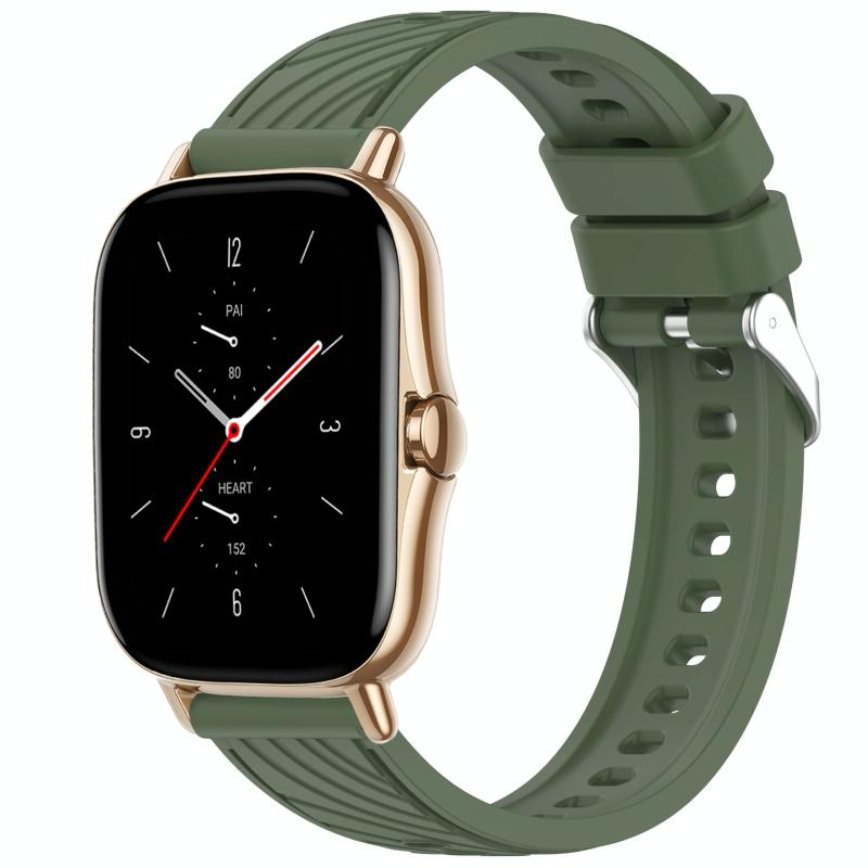 For Amazfit GTS 2 Stripe Texture 20mm Silicone Watch Band(Dark Green)