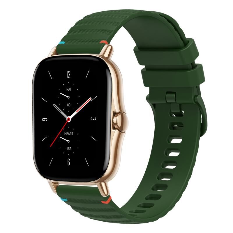 For Amazfit GTS 2 Wavy Dotted Stitched 20mm Silicone Watch Band(Army Green)