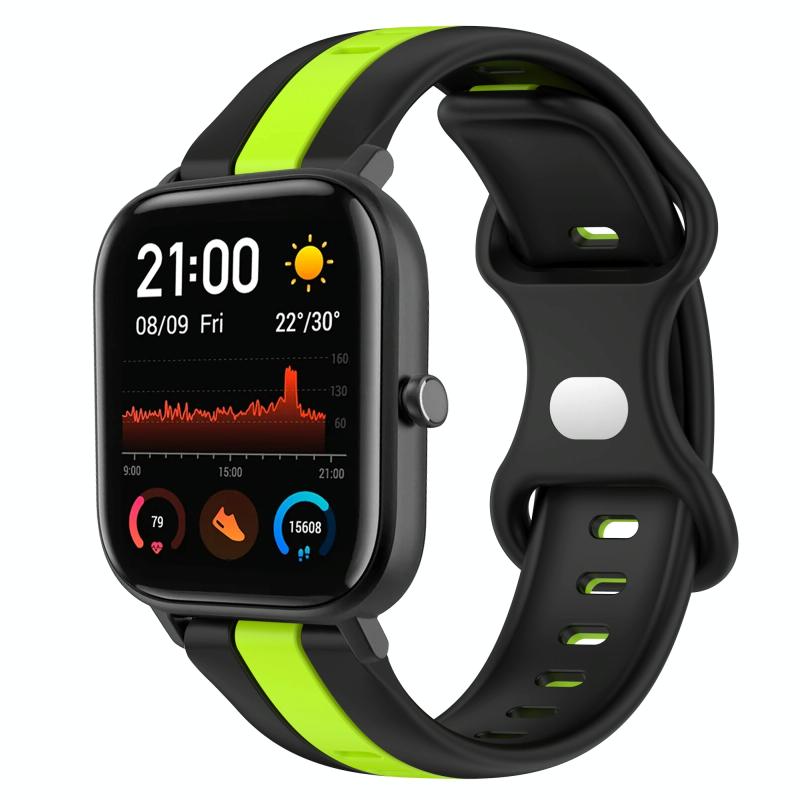 For Amazfit GTS 20mm Butterfly Buckle Two-Color Silicone Watch Band(Black+Green)