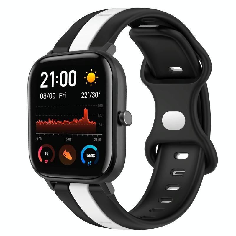 For Amazfit GTS 20mm Butterfly Buckle Two-Color Silicone Watch Band(Black+White)