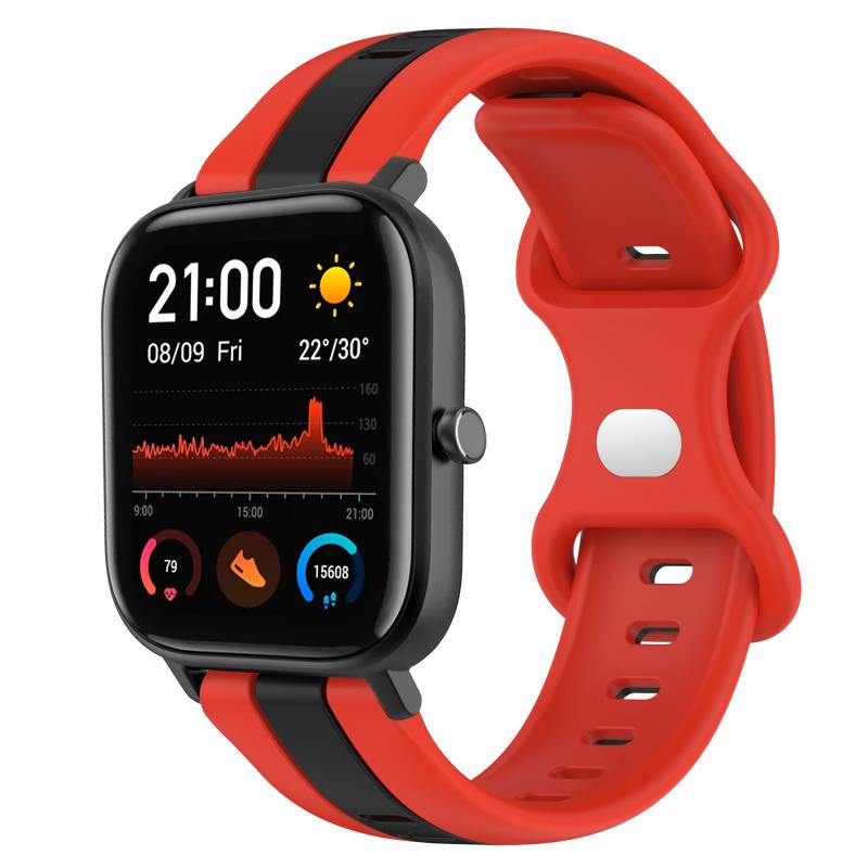 For Amazfit GTS 20mm Butterfly Buckle Two-Color Silicone Watch Band(Red+Black)