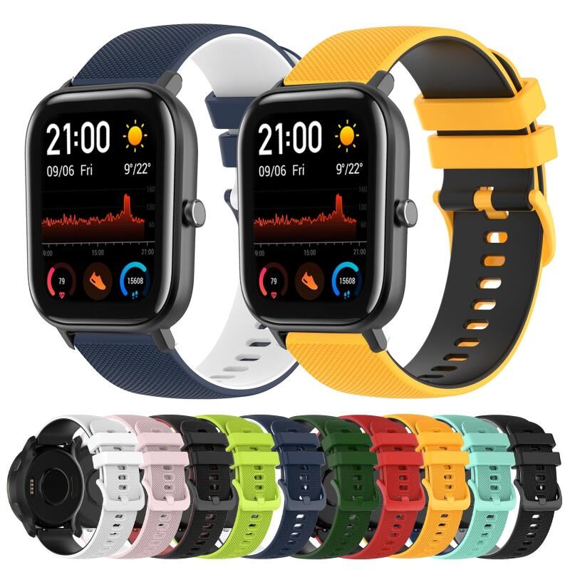 For Amazfit GTS 20mm Checkered Two-Color Silicone Watch Band(Dark Blue+White)