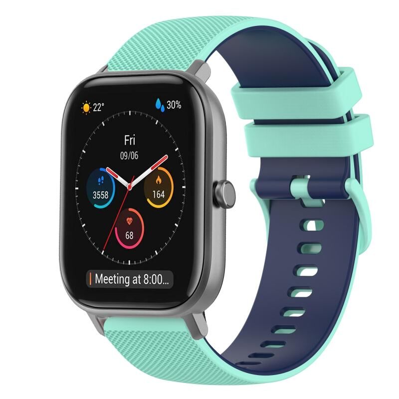 For Amazfit GTS 20mm Checkered Two-Color Silicone Watch Band(Teal+Blue)