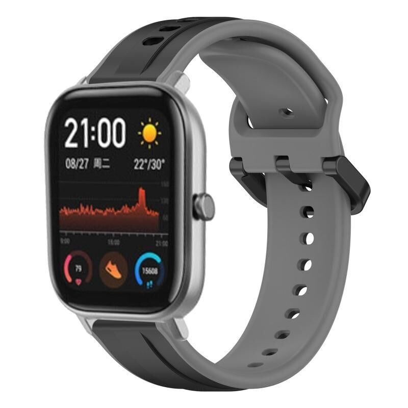 Για Amazfit GTS 20 χιλιοστά κυρτό βρόχο δύο χρωμάτων σιλικόνης ρολόι μπάντα (μαύρο + γκρι)