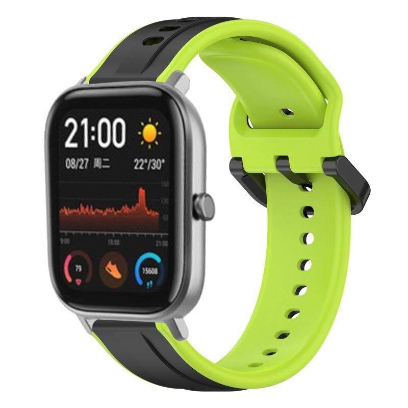 Για Amazfit GTS 20 χιλιοστά κυρτό βρόχο δύο χρωμάτων σιλικόνης ρολόι μπάντα (μαύρο + Lime)