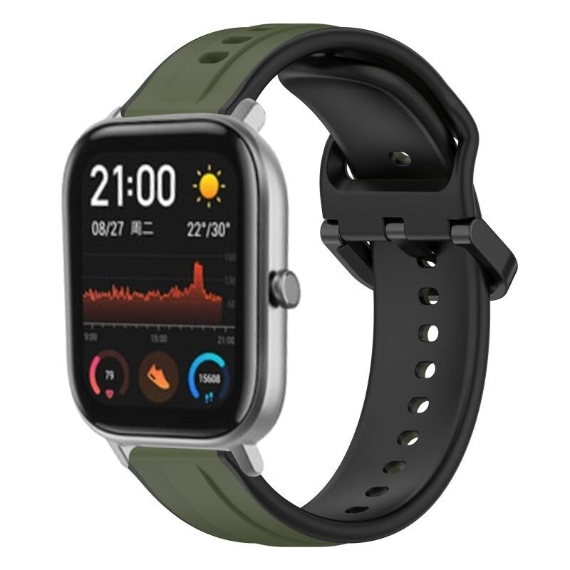 Για Amazfit GTS 20 χιλιοστά κυρτό βρόχο δύο χρωμάτων σιλικόνης ρολόι μπάντα (σκούρο πράσινο + μαύρο)