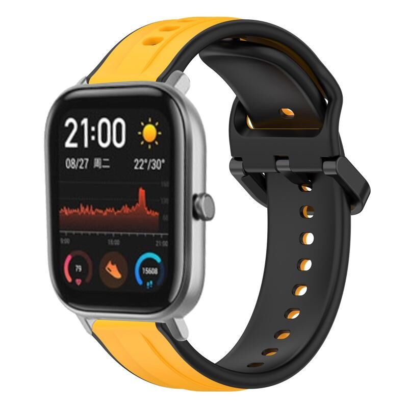 Για Amazfit GTS 20 χιλιοστά κυρτό βρόχο δύο χρωμάτων σιλικόνης ρολόι μπάντα (κίτρινο + μαύρο)
