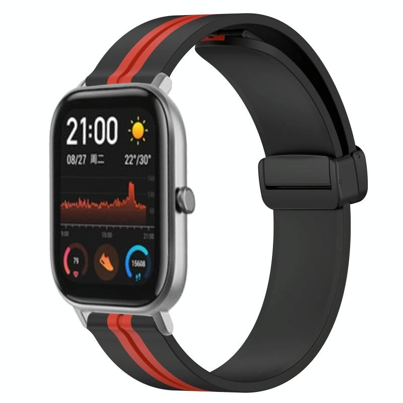 Για Amazfit GTS 20mm Πτυσσόμενο μαγνητικό κούμπωμα ζώνη ρολογιού σιλικόνης (μαύρο + κόκκινο)