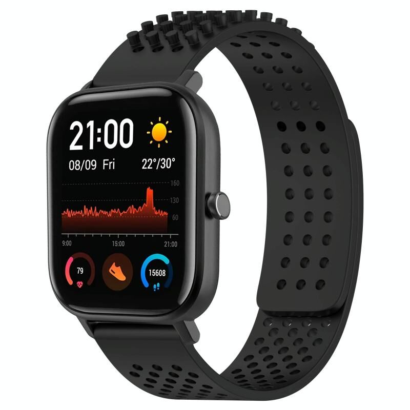 For Amazfit GTS 20mm Holes Breathable 3D Dots Silicone Watch Band(Black)