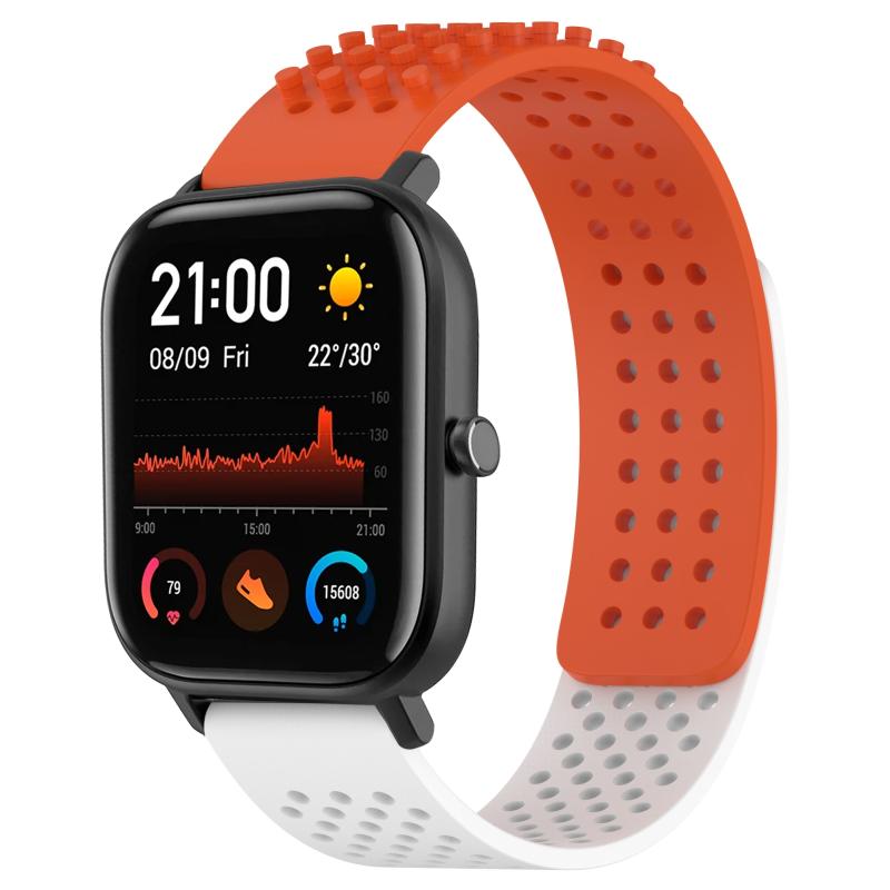 For Amazfit GTS 20mm Holes Breathable 3D Dots Silicone Watch Band(Orange+White)