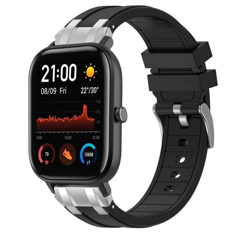 For Amazfit GTS 20mm Quick Release Silver Buckle Royal Silicone Watch Band(Black)