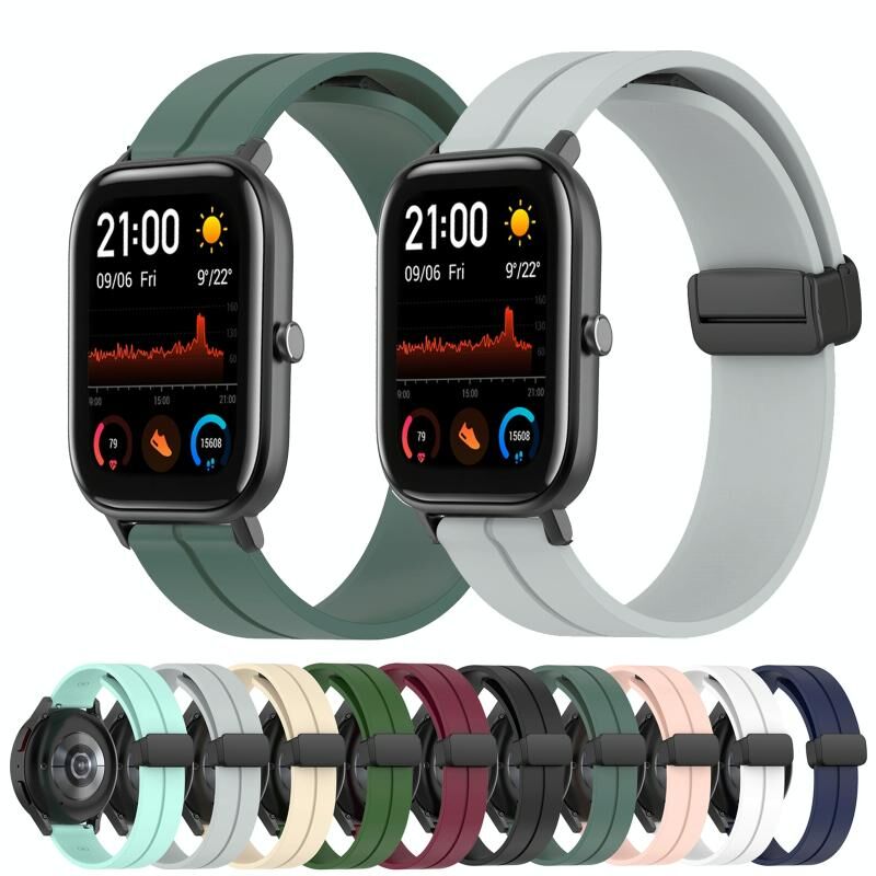 Για Amazfit GTS 20 χιλιοστά στερεό χρώμα μαγνητικό κούμπωμα σιλικόνης ρολόι μπάντα (μαύρο)