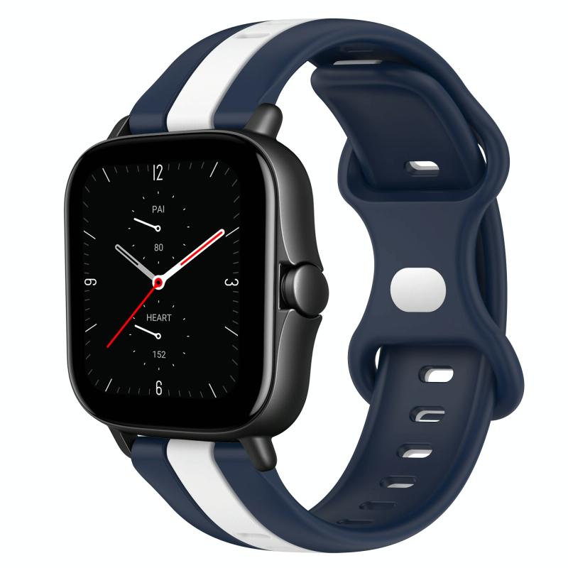 For Amazfit GTS 2E 20mm Butterfly Buckle Two-Color Silicone Watch Band(White+Blue)