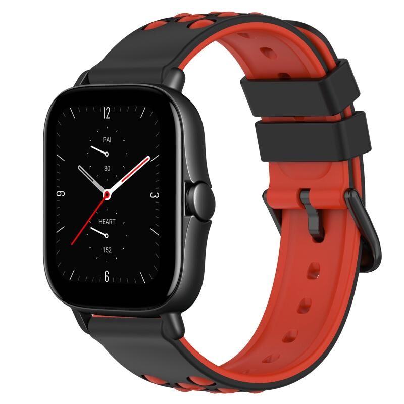 Για Amazfit GTS 2E 20 χιλιοστά δύο χρωμάτων πορώδη ζώνη σιλικόνης ρολόι (μαύρο + κόκκινο)