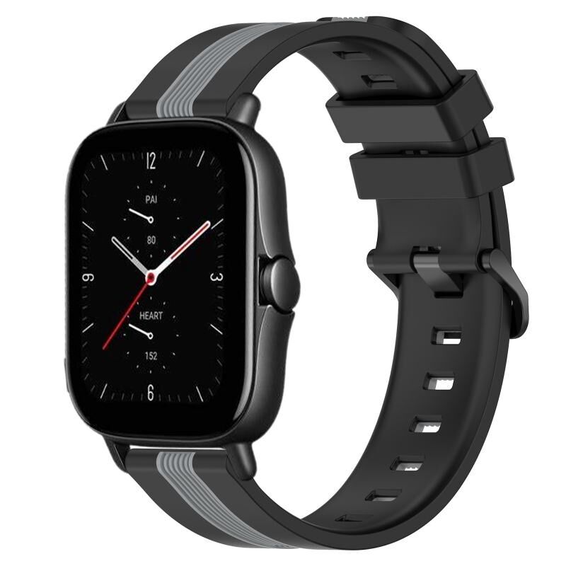 Για Amazfit GTS 2E 20mm Κάθετη Δίχρωμη Σιλικόνη Λουράκι Ρολογιού (Πορτοκαλί+Μαύρο)