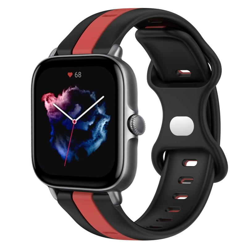For Amazfit GTS 3 20mm Butterfly Buckle Two-Color Silicone Watch Band(Black+Red)