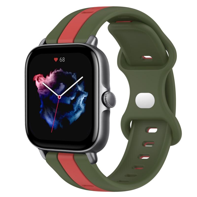 For Amazfit GTS 3 20mm Butterfly Buckle Two-Color Silicone Watch Band(Red+Army Green)