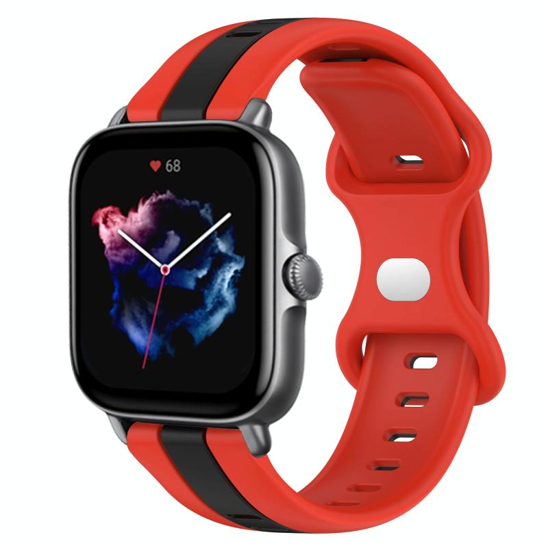 For Amazfit GTS 3 20mm Butterfly Buckle Two-Color Silicone Watch Band(Red+Black)