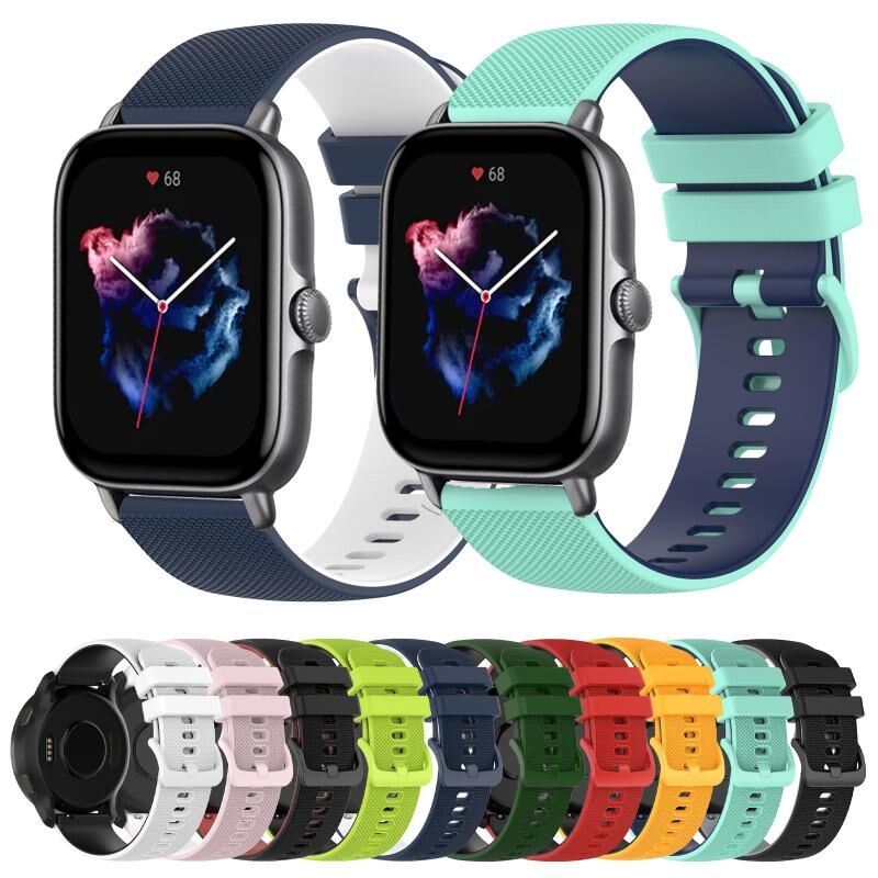 Για Amazfit GTS 3 20 χιλιοστά Checkered δύο χρωμάτων σιλικόνης ρολόι μπάντα (Lime Green + Μαύρο)