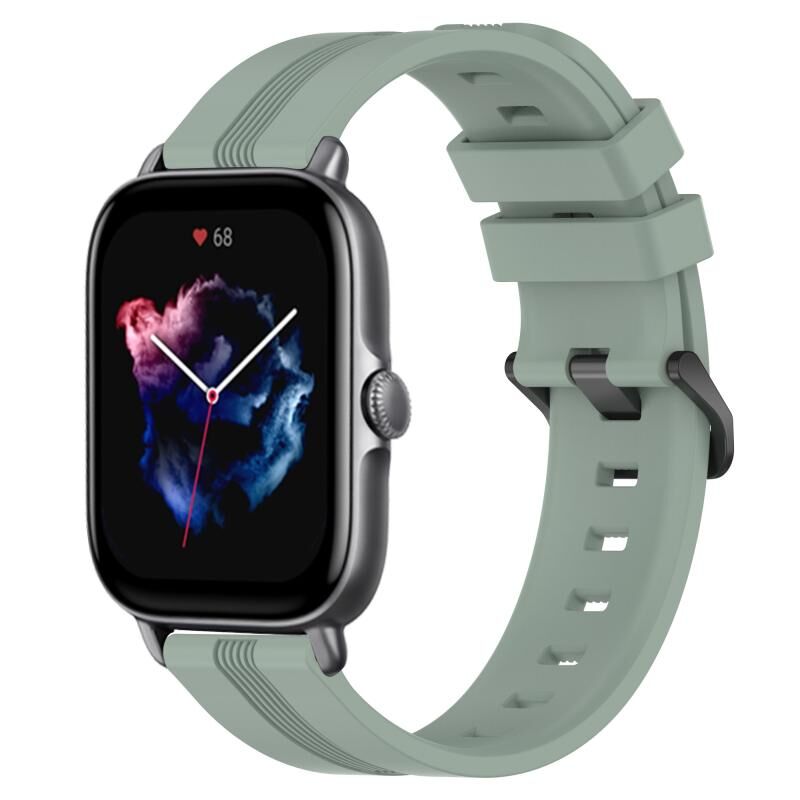 For Amazfit GTS 3 20mm Concave Striped Slicone Watch Band(Grayish Green)