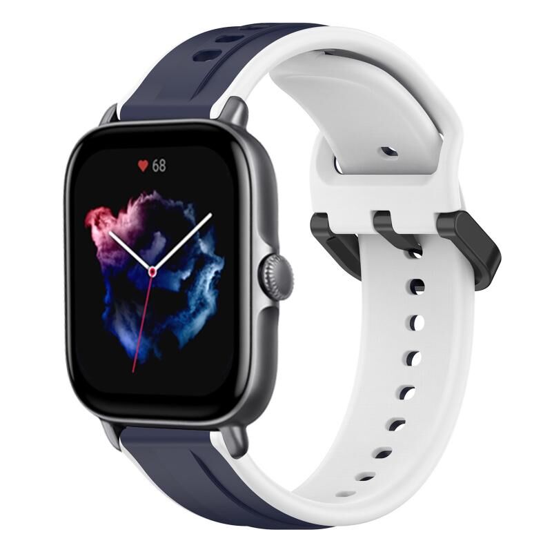 Για Amazfit GTS 3 20 χιλιοστά κυρτό βρόχο δύο χρωμάτων σιλικόνης ρολόι μπάντα (Midnight Blue + Λευκό)