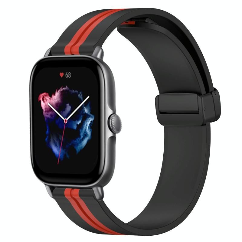 Για Amazfit GTS 3 20mm Πτυσσόμενο μαγνητικό κούμπωμα ζώνη ρολογιού σιλικόνης (μαύρο + κόκκινο)
