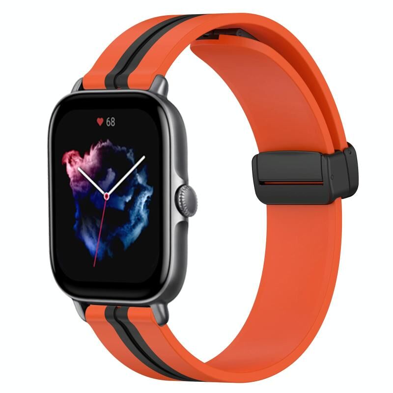 Για Amazfit GTS 3 20mm Πτυσσόμενο μαγνητικό κούμπωμα ζώνη ρολογιού σιλικόνης (πορτοκαλί+μαύρο)