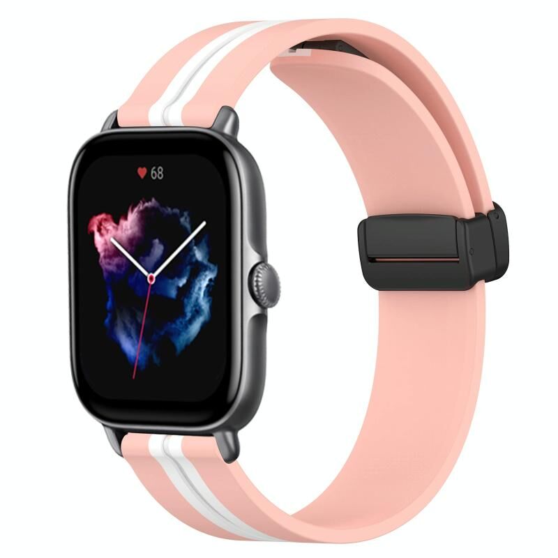 Για Amazfit GTS 3 20mm Πτυσσόμενο μαγνητικό κούμπωμα ζώνη ρολογιού σιλικόνης (ροζ+λευκό)