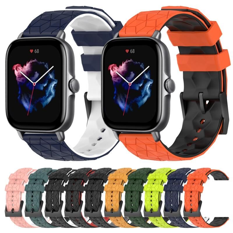Για Amazfit GTS 3 λουρί ρολογιού σιλικόνης διχρωμίας με υφή ποδοσφαίρου 20mm (Πορτοκαλί+Μαύρο)