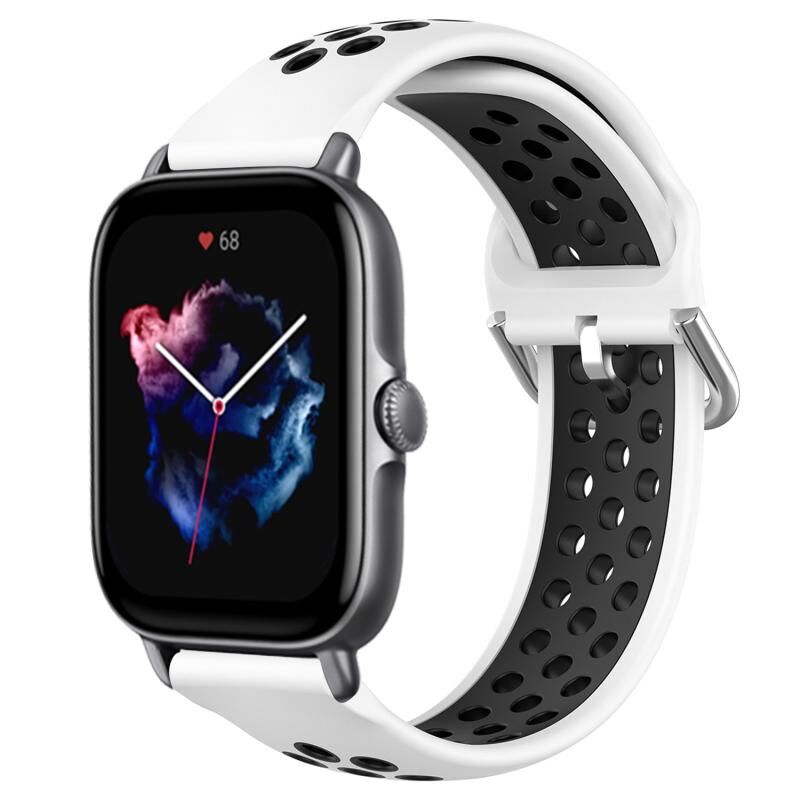 For Amazfit GTS 3 20mm Perforated Breathable Sports Silicone Watch Band(White+Black)