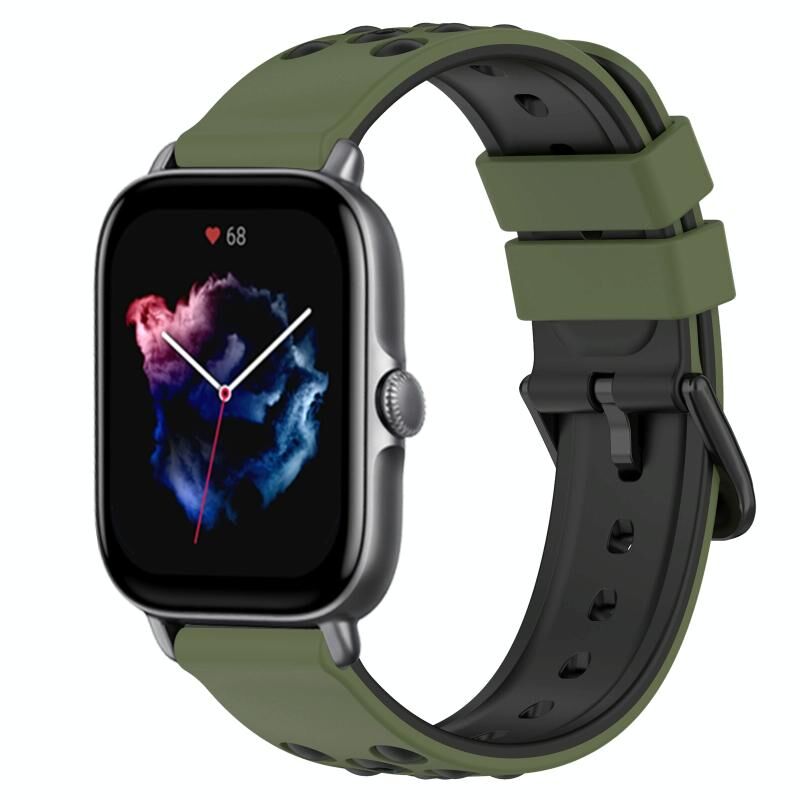 Για Amazfit GTS 3 20 χιλιοστά δύο χρωμάτων πορώδη ζώνη σιλικόνης ρολόι (πράσινο στρατού + μαύρο)