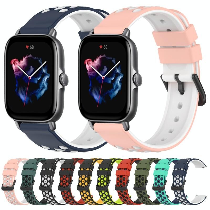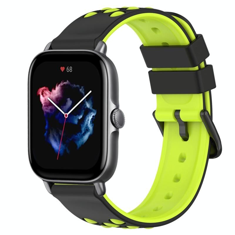Για Amazfit GTS 3 20 χιλιοστά δύο χρωμάτων πορώδη ζώνη σιλικόνης ρολόι (μαύρο + πράσινο χρώμα)