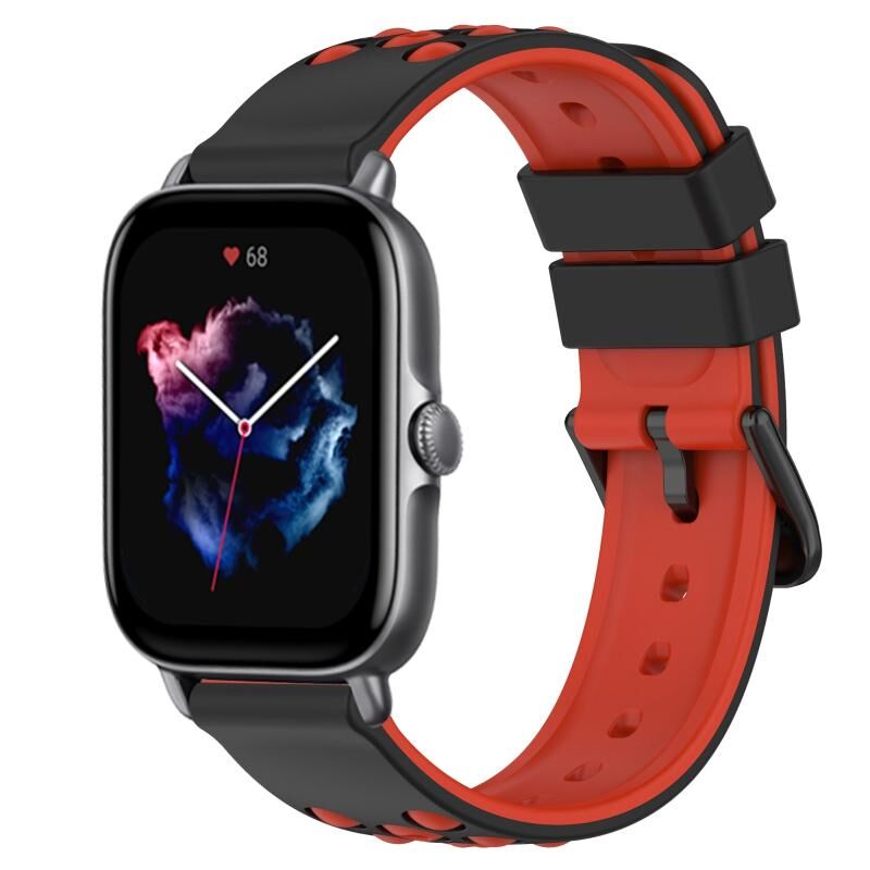 Για Amazfit GTS 3 20 χιλιοστά δύο χρωμάτων πορώδη ζώνη σιλικόνης ρολόι (μαύρο + κόκκινο)