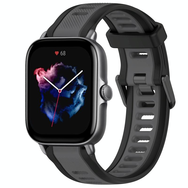 For Amazfit GTS 3 20mm Two-Color Textured Silicone Watch Band(Grey+Black)