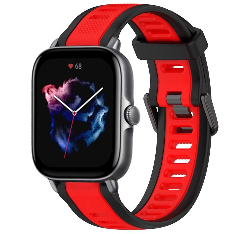 For Amazfit GTS 3 20mm Two-Color Textured Silicone Watch Band(Red+Black)