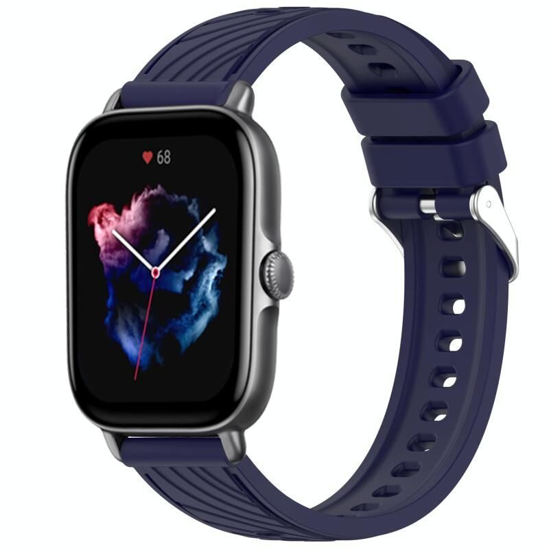 For Amazfit GTS 3 Stripe Texture 20mm Silicone Watch Band(Midnight Blue)