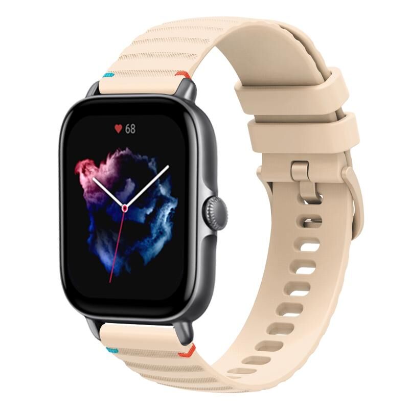 For Amazfit GTS 3 Wavy Dotted Stitched 20mm Silicone Watch Band(Cream Coloured)