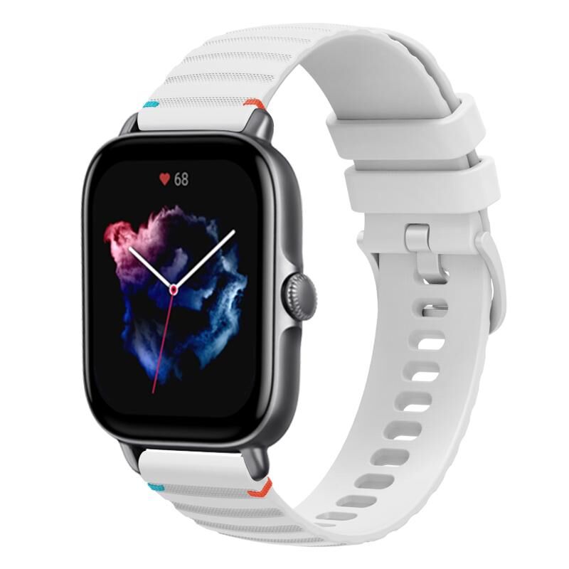 For Amazfit GTS 3 Wavy Dotted Stitched 20mm Silicone Watch Band(White)