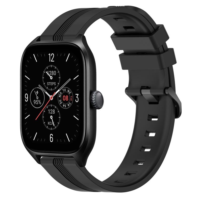 For Amazfit GTS 4 20mm Concave Striped Slicone Watch Band(Black)