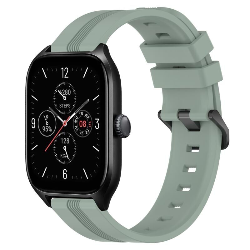 For Amazfit GTS 4 20mm Concave Striped Slicone Watch Band(Grayish Green)