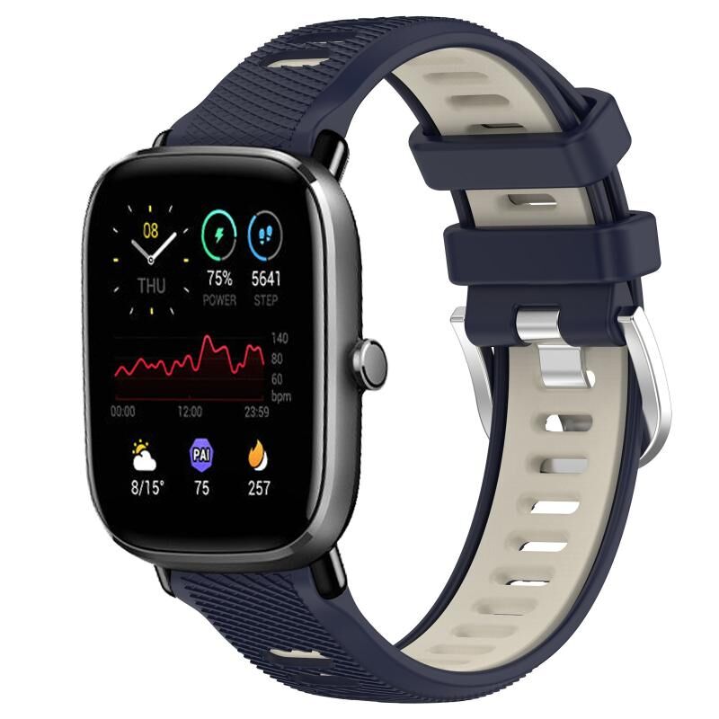 Για Amazfit GTS 4 λουρί ρολογιού σιλικόνης με ατσάλινη πόρπη, 20mm, διχρωμίας με ανάγλυφη υφή (Λευκό+Μπλε)