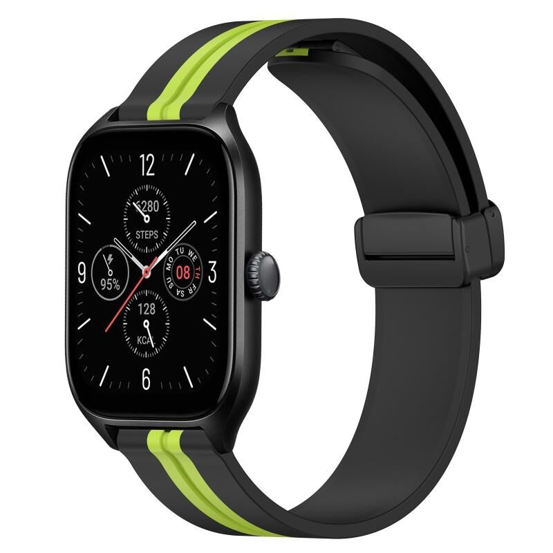 Για Amazfit GTS 4 20mm Πτυσσόμενο μαγνητικό κούμπωμα ζώνη ρολογιού σιλικόνης (μαύρο + πράσινο χρώμα)