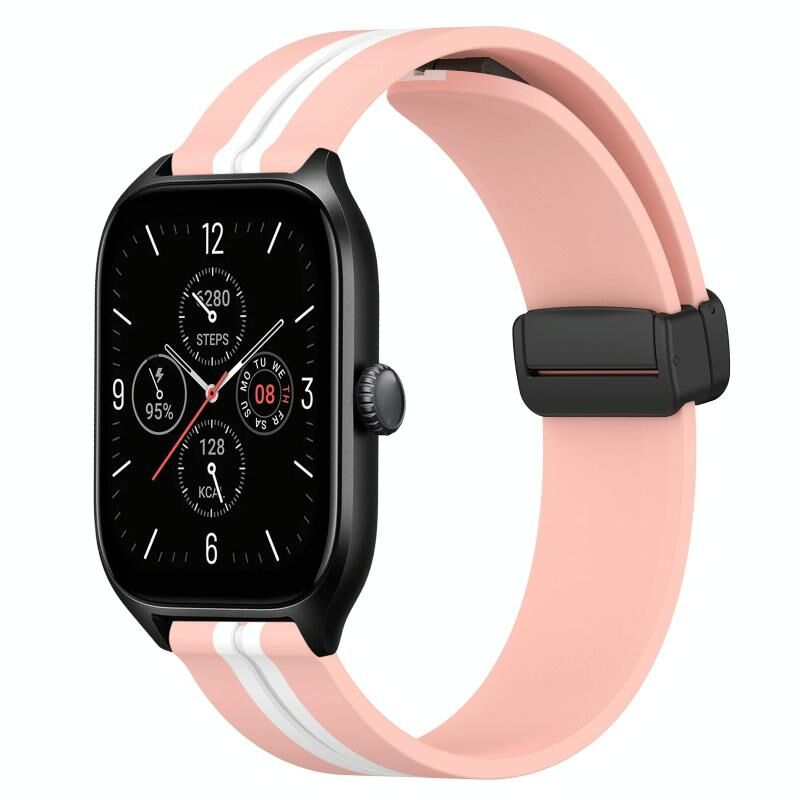 Για Amazfit GTS 4 20mm Πτυσσόμενο μαγνητικό κούμπωμα ζώνη ρολογιού σιλικόνης (ροζ+λευκό)