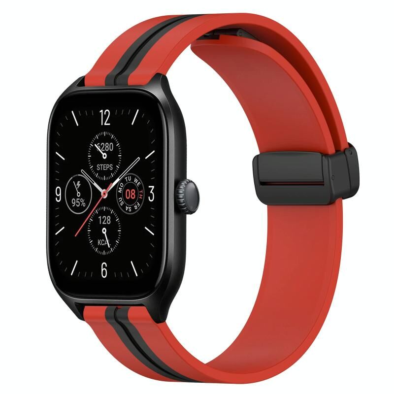 Για Amazfit GTS 4 20mm Πτυσσόμενο μαγνητικό κούμπωμα ζώνη ρολογιού σιλικόνης (κόκκινο + μαύρο)