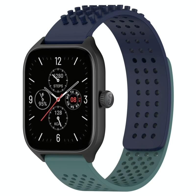 For Amazfit GTS 4 20mm Holes Breathable 3D Dots Silicone Watch Band(Midnight Blue+ Olive Green)
