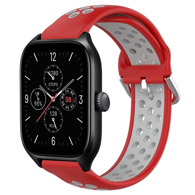 For Amazfit GTS 4 20mm Perforated Breathable Sports Silicone Watch Band(Red+Grey)