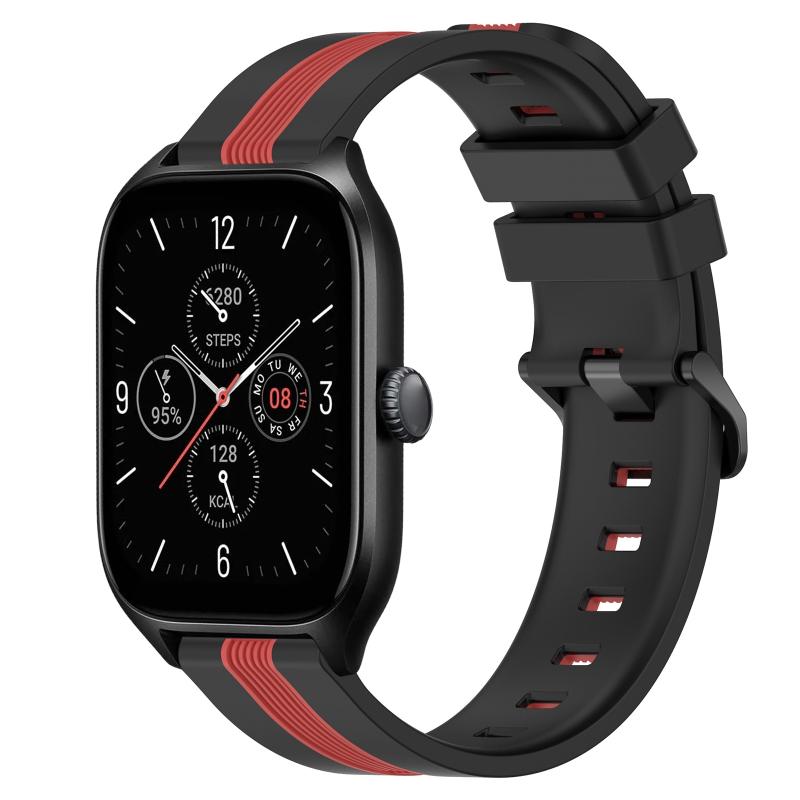 For Amazfit GTS 4 20mm Vertical Two-Color Silicone Watch Band(Black+Red)